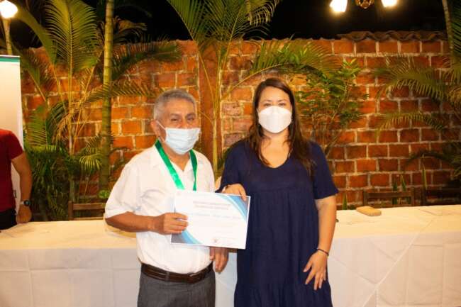 Durante el acto, la directora regional de Salud, Dra. Leslie Zevallos Quinteros, como representante del Gobierno Regional de San Martín (Goresam), entregó un merecido reconocimiento al director del laboratorio referencial, microbiólogo Heriberto Arévalo Ramírez, en mérito a su destacada laborar en la vigilancia epidemiológica que realiza durante esta pandemia de la COVID-19, también, por ser responsable de la organización y funcionamiento de este establecimiento desde sus inicios.
