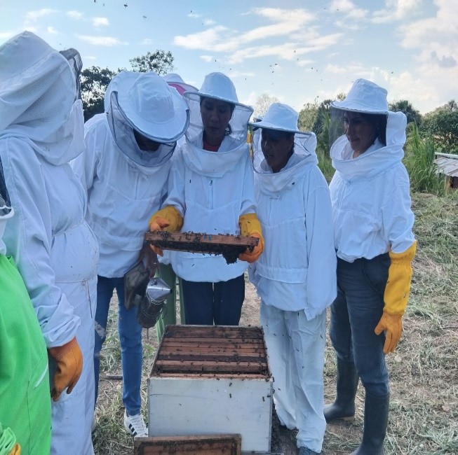 El proyecto está en la fase de fortalecimiento de capacidades con talleres de buenas prácticas en manejo de abejas, dirigido a los técnicos y especialistas de campo, quienes también hacen las réplicas a los beneficiarios.