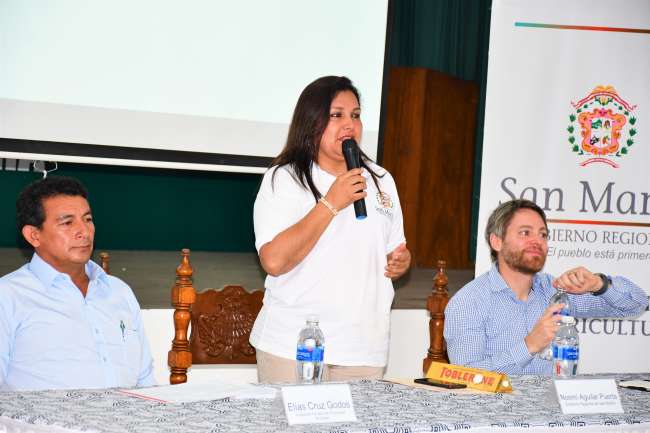 La vicegobernadora regional Nohemí Aguilar Puerta, en representación del gobernador Pedro Bogarín Vargas, al hacer uso de la palabra, indicó que el Gobierno Regional de San Martín, ha enfocado su accionar en el sector agrario priorizándolo a través de diferentes proyectos productivos en ejecución.