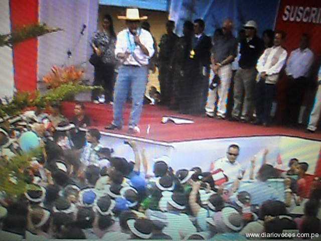Nueva Cajamarca.- Ante la llegada del presidente Ollanta Humala a Moyobamba, delegaciones de diferentes pueblos que esperan financiamiento para la culminación de obras para su localidad, llegaron a la capital de la región portando pancartas y carteles para hacer sentir al mandatario su demanda, por querer contar de una vez por todas con la realización de sus respectivos proyectos.