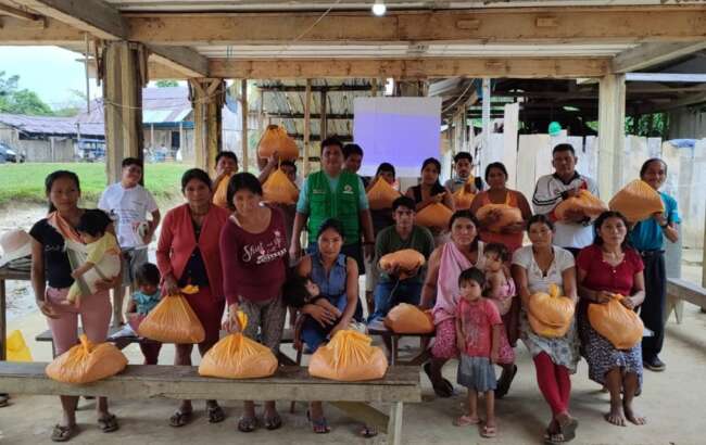 PEDAMAALC, a través del proyecto crianza de gallinas criollas mejoradas que se ejecuta en el centro poblado Ciro Alegría y anexos, ubicado en la Provincia de Condorcanqui, región Amazonas, hizo entrega de semilla certificada de maíz de la variedad marginal 28 – T, a 55 beneficiarios de las comunidades nativas de Sachapapa, Sinchi Roca y Líbano, que corresponden a la parte de Loreto, distrito de Manseriche.