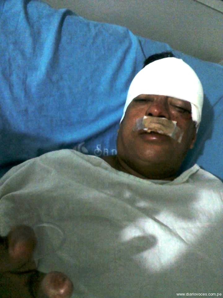 El herido fue identificado como Manuel Jesús Palomino Fernández de 49 años de edad, quien sufrió un corte en la cara y herida en la cabeza, sus compañeros de trabajo al conocer el accidente se constituyeron al hospital tarapotino preocupados por su estado de salud, porque en diciembre del año pasado sufrió un hecho similar dejándolo mal de salud.