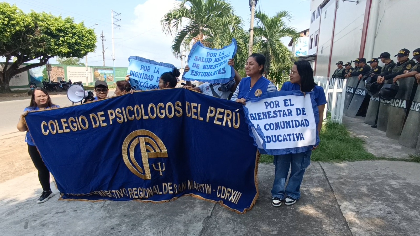 En una manifestación llevada a cabo frente a la Subregión Bajo Mayo del Gobierno Regional de San Martín, miembros de la Asociación de Psicólogos demandaron el cumplimiento de la normativa que requiere la presencia de psicólogos en las instituciones educativas del país.