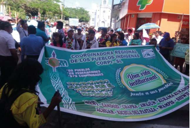 La marcha fue organizada por la Coordinadora Regional de Pueblos Indígenas (CORPI) con el respaldo de la Pastoral de la Tierra del Vicariato Apostólico de Yurimaguas.