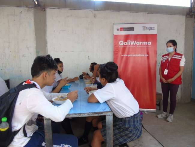 El Programa Nacional de Alimentación Escolar Qali Warma, del Ministerio de Desarrollo e Inclusión Social (Midis), verificó la preparación y consumo de alimentos en la institución educativa n.° 0013 Maximino Cerezo Barredo, provincia de Mariscal Cáceres, en el departamento de San Martín, nuevo colegio usuario que recibió productos nutritivos para sus 319 alumnos.