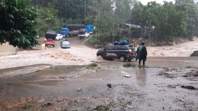 El aumento del caudal de una quebrada ubicada cerca al caserío Progreso en La Banda de Shilcayo, cerró el pase vehicular por varias horas en la carretera Tarapoto – Yurimaguas. El hecho sucedió este lunes en medio de la fuerte lluvia que cayó en esta parte de la selva peruana. Los vehículos quedaron varados en ambos extremos de la vía nacional.