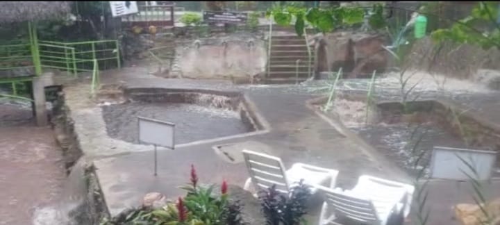 Ante las fuertes precipitaciones que caen casi todo el día en el Alto Mayo, en el cerro “San Mateo” nacen las dos quebradas que al incrementarse su caudal pueden inundar los Baños Termales como en el mes de marzo del 2020.