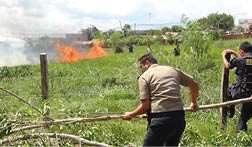 Producto de la fuerte insolación, hizo que una de las chispas, volaran al pasto seco, produciéndose el incendio que duró más de una hora, donde llegaron cinco policías, quienes no pudieron sofocar el fuego, utilizando ramas frescas y agua; luego llegaron más policías, acompañados de serenos, y finalmente apagaron el incendio, llamóla atención la no presencia de los bomberos, quienes en más de una oportunidad fueron alertados del caso.