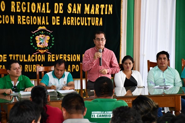 En la entrega de más de 250 titulos de propiedad rural a agricultores asentados en los distritos de Uchiza, Shunté, Polvora, Nuevo Progreso y Tocache, desarrollada en la Municipalidad Provincial de Tocache, manifestó que con este instrumento podrán lograr su desarrollo productivo y económico garantizando su seguridad jurídica y otros beneficios.