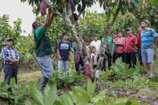 Los especialistas de campo de Devida impartieron sus conocimientos en diversos temas como el Manejo integral de plagas, abonamiento, poda, cosecha y poscosecha, con la finalidad de que el agricultor se convierta en un técnico con conocimientos referidos al cultivo del cacao y los apliquen en sus propias parcelas.
