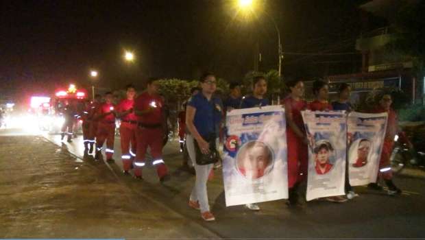 Decenas de bomberos junto a los jefes de compañía salieron junto a sus unidades de la base que tienen en el distrito de Morales, desde donde partieron al centro de la ciudad con vela en mano y portando las imágenes de los que hoy son considerados héroes nacionales por perecer cumpliendo su deber en salvar vidas.