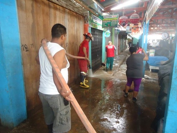 Trabajadores del área de limpieza, conjuntamente con los conductores de los puestos, sector Salud realizaron la limpieza, provistos de escobas, equipos de fumigación, baldes y otros enseres iniciaron las labores con el apoyo de Compañía de Bomberos de Moyobamba quienes desplazaron sus unidades, como cisternas y mangueras para limpiar a presión el piso del mercado. El Subgerente de desarrollo comercial de la municipalidad de Moyobamba, Alex Martínez quien participó de la jornada, mencionó que este tipo de actividades se programa dos veces al año, dando cumplimiento al Reglamento Sanitario de Funcionamiento de Mercados y el Reglamento Sanitario del Faenado de Animales de Abasto, en dichas normativas se hace referencia a la desratización, limpieza, y fumigación para evitar la contaminación de alimentos. Por lo tanto, es una prioridad realizar dichas actividades para asegurar la inocuidad de los alimentos para la población moyobambina, mencionó. (Franclin Laván)