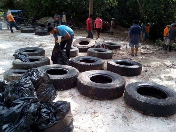 Con el apoyo de los integrantes de la Asociación Alto Ahiashiyacu y la asociación Valle del Tiracu, se realizaron recojos de residuos sólidos: plásticos, cartones y 25 llantas de camiones.
