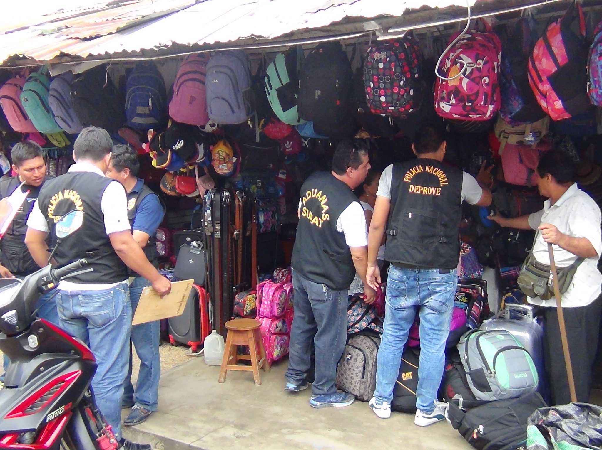 El operativo se ejecutó a los comerciantes que se dedican a la venta de mochilas y maletines de contrabando, en las cuadras 4 y 5 de la avenida Lima.