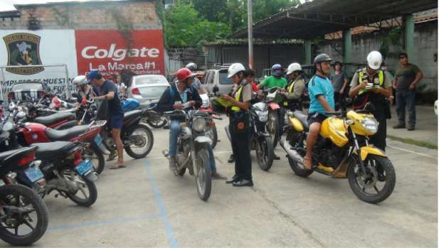 Tarapoto. Agentes de la División de Tránsito de la Policía Nacional del Perú, ayer por la mañana realizó un megaoperativo en el distrito de Morales, con la finalidad de realizar una medida preventiva contra los conductores de motocicletas que se desplazan sin utilizar el casco de seguridad, los casi mil intervenidos, fueron obligados a ir en busca de sus cascos y antes de entregarles sus vehículos recibieron una charla de sensibilización.