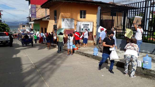 Algunos vecinos lavaron la bandera nacional como señal de la lucha contra posibles actos de corrupción. Los manifestantes exigieron que se reivindiquen sus derechos como propietarios, ya que tienen sus respectivos títulos de propiedad, sin embargo, la primera propietaria también señala tener sus documentos en regla y ahora mediante un proceso judicial pretende recuperarlo.