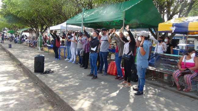 Integrantes de una congregación religiosa llegaron hasta el frontis del Hospital II – 2 de Tarapoto, con la finalidad de realizar oraciones en favor de los pacientes con COVID que están internados en ese nosocomio. Durante una hora estuvieron rezando y los familiares de los que están delicados de salud también los acompañaron y de esa manera esperan contribuir en la lucha contra el Nuevo Coronavirus.