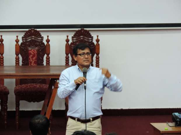 Manuel Luna Lanata, responsable de la Unidad de Evaluación y Selección del Programa Nacional de Innovación para la Competitividad y Productividad, dio las charlas en el Instituto Superior Tecnológico Nor Oriental de la Selva, por la mañana, luego por la tarde en la Universidad Nacional de San Martín y finalmente en la noche en la Cámara de Comercio y Producción de San Martín.