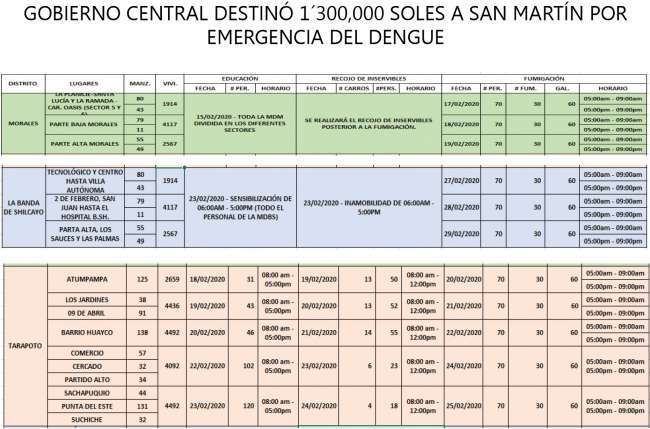 La cruzada se realizará en dos partes, primero el recojo de inservibles, y luego la fumigación, en La Banda de Shilcayo y Tarapoto, mientras que en Morales será primero la fumigación luego el recojo de inservibles.