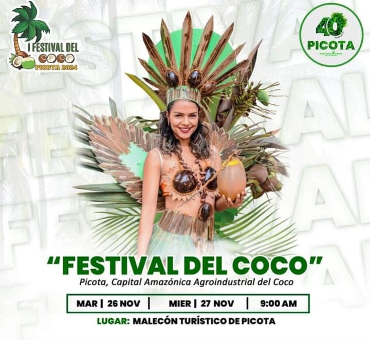 El Primer Festival Regional del Coco, se llevará a cabo en el campo ferial, acondicionado en el malecón turístico de Picota, el martes 26 y miércoles 27 de noviembre, los interesados, pueden registrarse en la Agencia de Desarrollo Local de Picota, en la Dirección Regional de Agricultura de San Martín (DRASAM) en Tarapoto o llamar al número de celular 931606652.