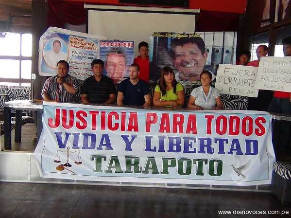 Los integrantes del Comité Unidos por Justicia, liderados por Paolo López Velesmoro, realizaron una conferencia de prensa, con la finalidad de invitar a la población sanmartinense, a la marcha pacífica que realzarán hoy en el centro de la ciudad, con la finalidad de exigir que las autoridades del Poder Judicial resuelvan los asesinatos que quedaron impunes en Tarapoto.