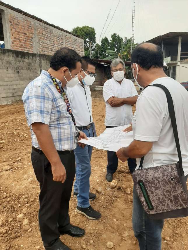 El médico Miguel Gómez Abanto, jefe de la OGES-400, realizó hoy una rápida inspección a la obra y constató el normal desarrollo del proceso constructivo y el riguroso cumplimiento de los protocolos de seguridad Covid.