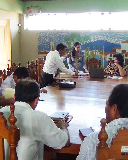 Tal como estaba programado, el día lunes 12 a las 3 de la tarde se realizó la primera sesión ordinaria de consejo municipal de la provincia de rioja correspondiente al presente año, antes de declarar apertura da la sesión la alcaldesa juramento a la regidora Emma Ruiz Cabrera , que por motivos de salud no pudo juramentar con sus demás colegas el día 2 de enero, luego la Químico Farmacéutica Mercedes Torres Chávez presidio la sesión presentando a su nuevo equipo técnico que lo acompañara en la presente gestión periodo 2015 – 2018, posteriormente la alcaldesa dio a conocer un amplio informe de la rendición de cuentas y transferencia periodo 2015- 2018, seguidamente se aprobaron por unanimidad la socialización del presupuesto institucional de apertura ..PIA, 2015, por la cual cuenta con un techo presupuestal por el importe de 14’ 125, 324.00 nuevos soles y socialización del plan operativo institucional POI, también fue aprobado la primera modificación del presupuesto institucional de apertura del Pte. Año, según resolución directoral Nº 025-2014-EF/50.01, por el importe de 53,399.00 de la fuente de financiamiento de recursos determinados, de igual forma, se aprobó la incorporación de saldos de balance del ejercicio 2014, por el importe de 1´ 799, 383 .00, y por último se aprobó la conformación de las comisiones de trabajo para el presente año.