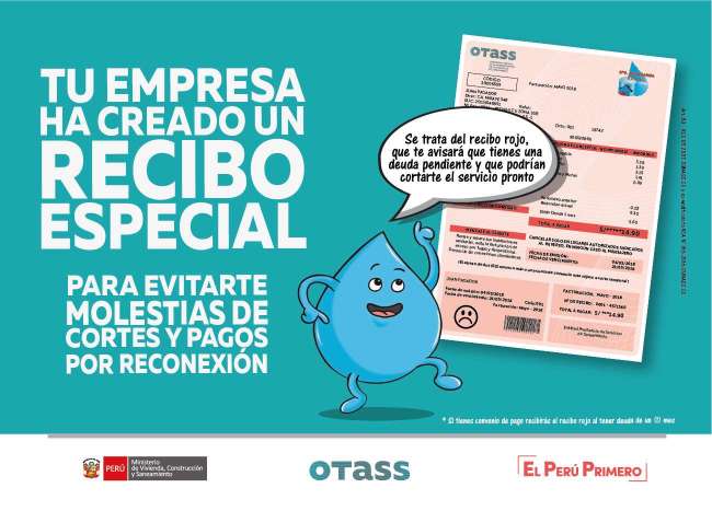 El Organismo Técnico de la Administración de los Servicios de Saneamiento (OTASS), implementa la iniciativa del uso de recibos de colores en las empresas de agua potable bajo el régimen de apoyo transitorio.