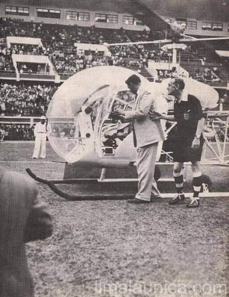 Ya se había ganado el respeto de todos, así que los dirigentes accedieron y «Mister Din» llego a nuestro primer escenario espectacularmente en un helicóptero ante los aplausos del abarrotado estadio. La gente no había ido tanto por el partido, sino por ver bajar en esa forma al popular referí inglés. Fuente: Viaje en el Tiempo.