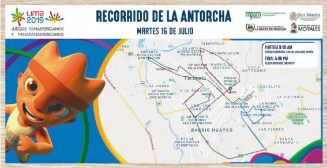 La ciudad de Tarapoto tiene el alto honor de recibir a la Antorcha Panamericana, que hará su recorrido por la ciudad este martes 16 de julio, desde las 9 de la mañana.
