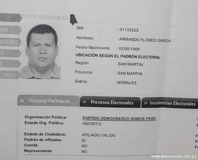 El regidor populista salió al frente con un documento del Jurado Nacional de Elecciones, donde se puede ver que Armando Flores García, está afiliado al Partido Democrático Somos Perú, inscrito como afiliado válido.