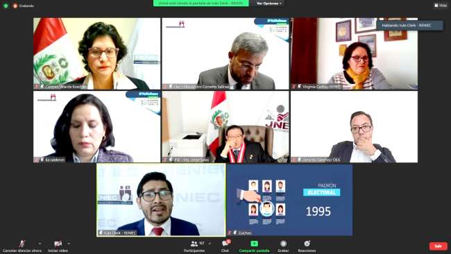 El evento virtual de presentación de la plataforma y la campaña contó con la participación de la jefa nacional del RENIEC, Carmen Velarde Koechlin, el jefe del Jurado Nacional de Elecciones (JNE), Dr. Jorge Salas Arenas, el Jefe de la Oficina Nacional de Procesos Electorales (ONPE), Piero Corvetto Salinas y Gerardo Sánchez, representante de la Misión en Perú – OEA.