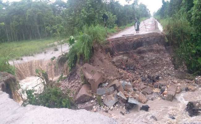 En la carretera que une Rioja con Yorongos, la alcantarilla ha colapsado en el sector Monte Alegre, quedando aislado varios centros poblados. En Nueva Cajamarca, el colegio San Juan Bautista también quedo inundado.
