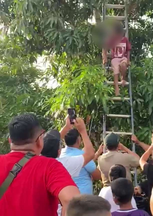 Un niño de once años de edad, vivió momentos de tensión luego de quedarse atrapado en la parte alta de un tronco de mango, en momentos que no podía bajar por un enjambre de avispas que estaba a punto de atacarlo. Agentes del serenazgo de Tarapoto le apoyaron para que esté a buen recaudo.
