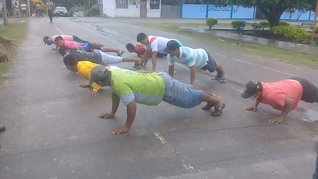 Ayer por la tarde los reservistas de ese centro poblado realizaron ejercicios físicos en la plaza en su afán de volver a servir su patria esta vez contra un enemigo invisible como es el Coronavirus, también para incentivar a otros jóvenes el amor por la patria.