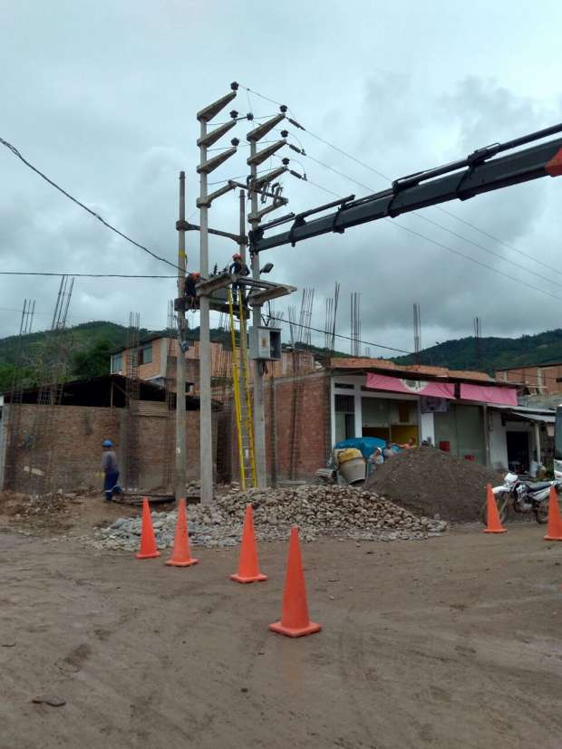 Campanilla. En el marco de la modernización de redes de media y baja tensión para subsanar deficiencias de distancias mínimas de seguridad, personal de la empresa eléctrica, realizó trabajos en el frontis de la plaza de Armas del distrito de Campanilla en la provincia de Mariscal Cáceres, donde se instaló dos postes de concreto de 13 metros, media loza de concreto y perfiles de fierro galvanizado,