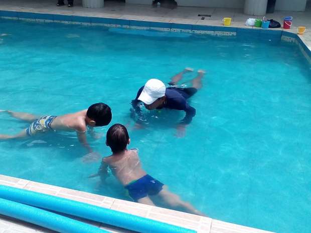 Las clases en este verano se iniciaron con el primer grupo el 2 de enero en la piscina del hotel Santa Rosa de la Cancha Sintética Jr. Cusco No. 160, altura de la cuadra 12 del Jr. Jiménez Pimentel- barrio Huayco Tarapoto.