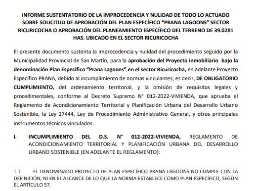 Hoy, la situación de la laguna Ricuricocha ubicada a pocos minutos del centro de Tarapoto y considerada una zona intangible por el propio Plan de Desarrollo Urbano (PDU) vuelve al debate público tras la reciente aprobación de un plan específico urbanístico promovido por una empresa privada.