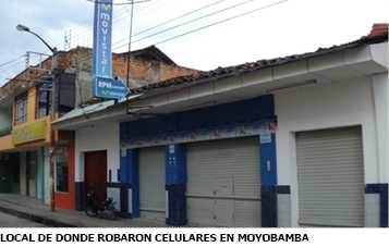 La tarde del lunes 10 de enero, un negocio ubicado en la quinta cuadra del jirón Pedro Canga, fue víctima de robo, donde sujetos de mal vivir se llevaron más de 100 mil soles en equipos celulares.