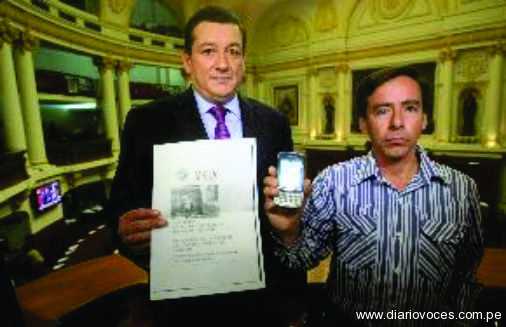 El parlamentario exhibió en el pleno del Congreso un volante donde se menciona su nombre, el de la autoridad municipal y del asesor del alcalde, Carlo Magno Pasquel.