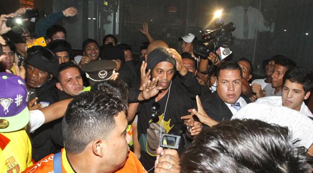 Ronaldinho suele ser querido por la mayoría de fanáticos del fútbol en el mundo, pero al llegar a Ecuador, una persona que se mezcló entre los ‘fanáticos’ del Barcelona ecuatoriano intentó tomar la gorra del ídolo brasileño mientras trataba de dirigirse al transporte que lo llevaría a su hotel.