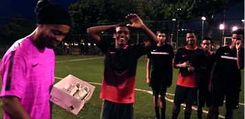 Es así que Ronaldinho les dijo a unos jóvenes que para ganarse los botines debían impactar una pelota y chocarla con el palo horizontal de uno de los arcos. El desafío fue duro ya que, como se puede ver en el video, este inició en la tarde y culminó casi entrando a la noche.
