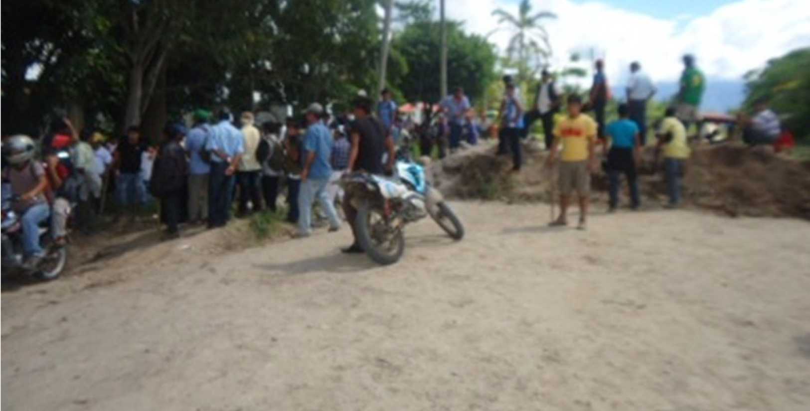 Soritor. Desde el día lunes 01 de diciembre del presente año, siendo las 2 de la madrugada, más de 1 200 integrantes de la Central única de Rondas Campesinas del este distrito, acatan una huelga indefinida, bloqueando la carretera de ingreso al distrito de Soritor, en el tramo Soritor – Habana, en el carretera Sector Shica, que conduce a la ciudad de Rioja y el tramo Soritor – Centro Poblado San Marcos. La medida es contra del alcalde Josué Jara Acuña, por las irregularidades en su gestión edil, así manifiesta el presidente de la Central única de las Rondas Campesinas Rosendo Vargas Meléndez, señala que la medida de protesta es para exigir la presencia de una comisión de alto nivel, entre ellos el fiscal de la Nación y el contralor de la República.