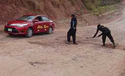 Tramo de la carrera a la altura del distrito de Buenos Aires, provincia de Picota, se encuentra abandonada, desde el hundimiento de la carretera asfaltada producto de fallas geológicas.