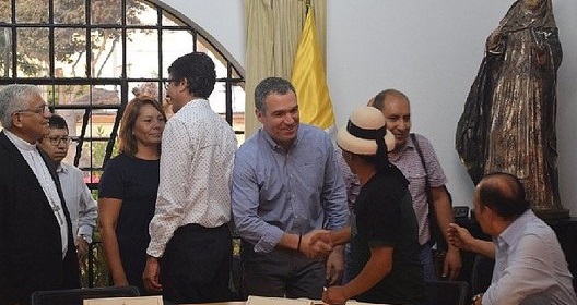 El Presidente del Consejo de Ministros, Salvador Del Solar, se reunió en la sede de la Conferencia Episcopal Peruana con el presidente de la comunidad de Fuerabamba, Gregorio Rojas, y el monseñor Miguel Cabrejos, en su condición de mediador del diálogo.