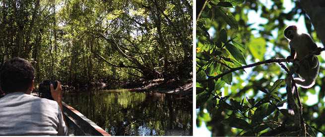 LOS RENACALES. Lugares que parecen de cuento // MONO FRAILE. Una de las cuatro especies de primates existentes en la zona // ABAJO: Enorme buho