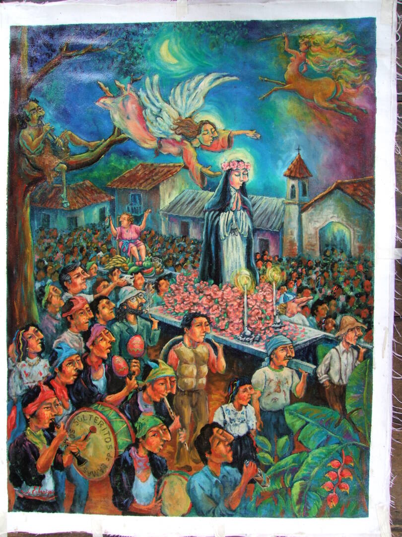 - Carachupeada: Baile popular donde todos están disfrazados de carachupas (Armadillo) con hojas secas de plátano.