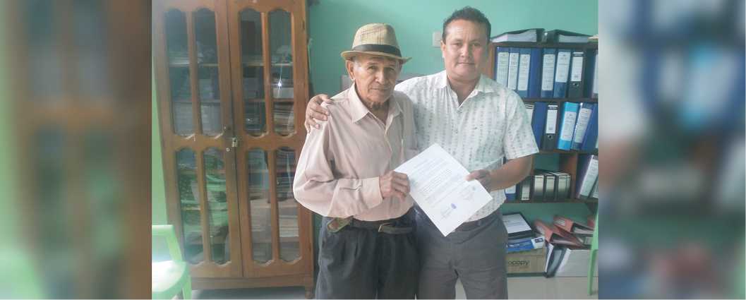 Juan García del Águila Exalcalde y exregidor del distrito de Sauce, natural y residente en el mismo distrito, el día de ayer en horas de la mañana en una reunión en la Oficina de Alcaldía, donde estuvo presente el alcalde Jorge del Águila Vela, juntamente con su plana de Regidores, para escuchar con respecto a su visita, donde dijo que entrega a la municipalidad Distrital de Sauce 100 metros cuadrados de terreno para la captación de agua y 100 m2 para el reservorio de agua.