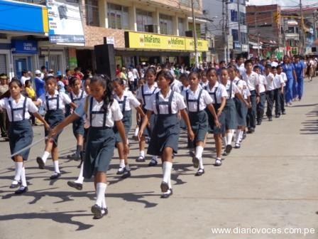 Concluido el ceremonial de izamiento de las banderas de la Paz, de Tarapoto y el Pabellón Nacional, se desarrolló el desfile cívico escolar con notable asistencia de alumnos, profesores y un gran público que aplaudió a los estudiantes y maestros.