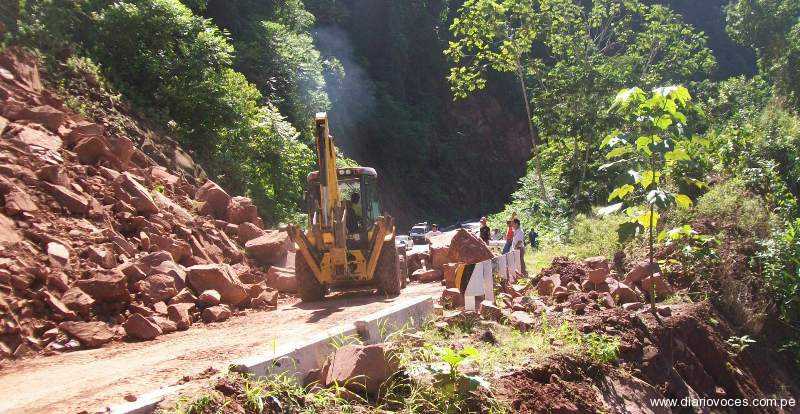 Tarapoto. Las fuertes precipitaciones pluviales que se viene suscitando en estos últimos días en la región están ocasionando derrumbes de considerable proporción en la carretera Puente Colombia – Shapaja – Chazuta. Ante ello el Gobierno Regional de San Martín a través de la Dirección Regional de Transportes y Comunicaciones invoca a los conductores y usuarios de la vía a tomar sus precauciones para evitar accidentes que podrían ser lamentables. Recomiendan estar siempre alertas y evitar en lo posible transitar de noche porque los fragmentos de rocas se desprenden intempestivamente.